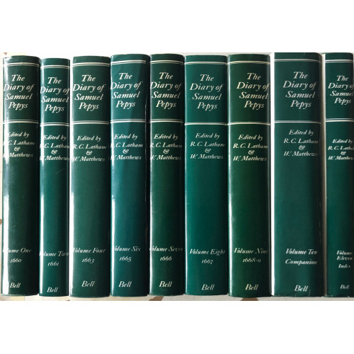 Diary of Samuel Pepys, A New and Complete Transcription edited by Robert Latham and WIlliam Matthews . 9 (of 11 vols.) lacking vols. IV & V but including Companion and Index.