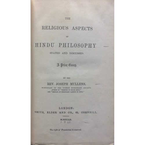 The Religious Aspects of Hindu Philosophy Stated and Discussed. A Prize Essay.