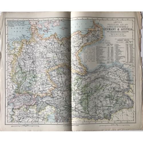 Colour map, from Letts's "Popular Atlas", showing railways and boundaries.